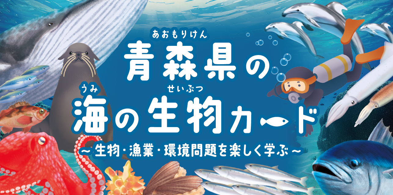 当館ではワークシートや物づくりなどの学習コンテンツをご用意しておりますが、ご利用されるお客様から生物の図鑑やカードが欲しいというご要望をいただいておりました。そこでこの度、青森県の海の生物・漁業・環境問題について楽しく学べる「青森県の海の生物カード~ 生物・漁業・環境問題を楽しく学ぶ ~」を作成いたしました。